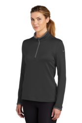 Advertise your brand with our Nike Ladies Dri-FIT Stretch 1/2-Zip Cover-Up 7.6 oz. Jacket w/ Screen Print. This custom sweatshirt is made of 7.6-ounce, 93/7 polyester/spandex Dri-FIT fabric. This popular sweatshirt offers a large screen print area of 4" x 4" on Left/ Right chest as well as on Back. Built for the course, gym or just around town, this cover-up performs with comfortable stretch for uninhibited movement and Dri-FIT moisture management technology for exceptional cooling. The design includes a contrast collar and zipper, open cuffs and an open hem. Tailored for a feminine fit. The contrast Swoosh design trademark is embroidered on the upper left sleeve.Thumbholes at cuffs for warmth and enhanced fit. Order these trendy cover-up now and advertise your brand like never before!